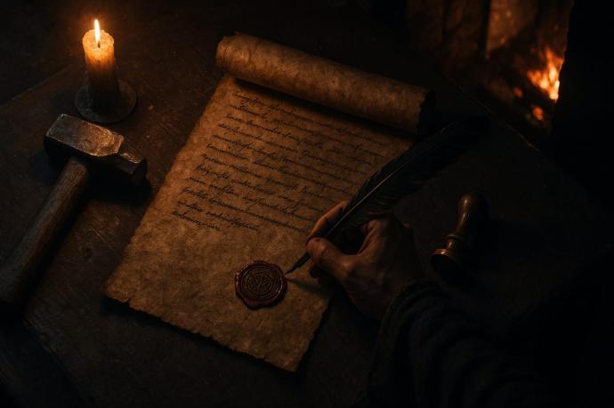 Seu nome será inscrito em nosso livro. Sua lealdade, recompensada com aço.
